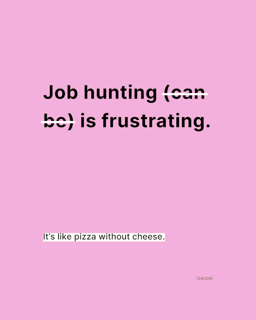 The project reframes the job search as a design problem — one that balances personality and professionalism through bold visual choices and direct language.