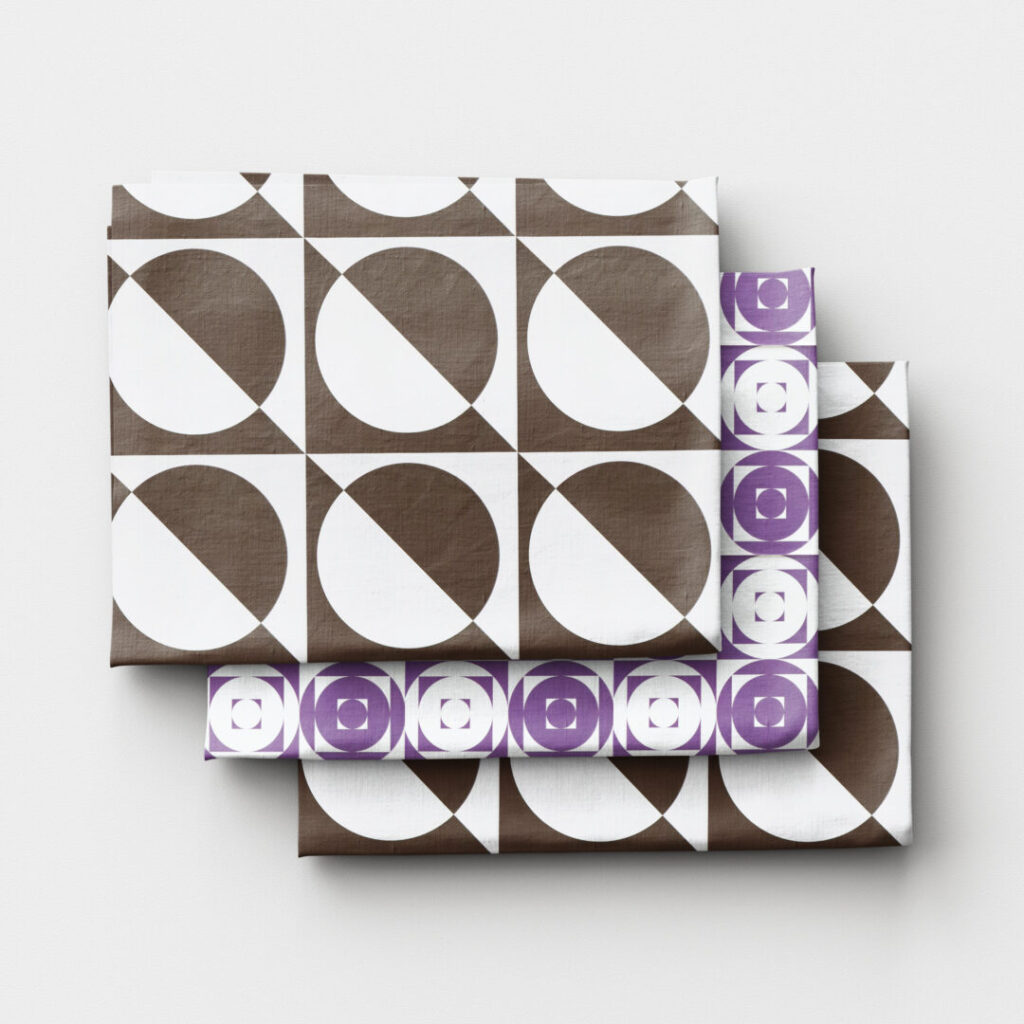 Wobbly is a four-tile collection exploring rhythm, repetition and subtle optical movement. Each pattern has its own identity — ranging from radial lines to concentric shapes— yet all share the same geometric language, creating a modular and playful visual system.
